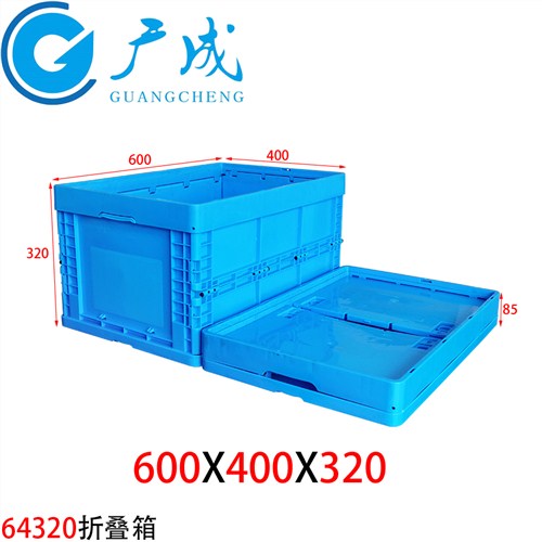 批发600*400*320汽车折叠箱_塑料日式折叠箱_蓝色带盖子物流周转箱