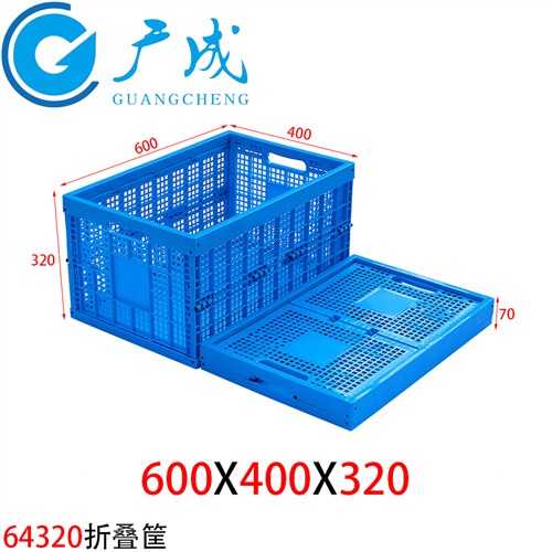 6432 蓝色折叠周转箱物流箱 外贸定制折叠塑料周转筐周转箩