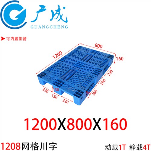 1200*800网格川字塑料托盘加钢管仓储塑料托盘单面川字型垫板