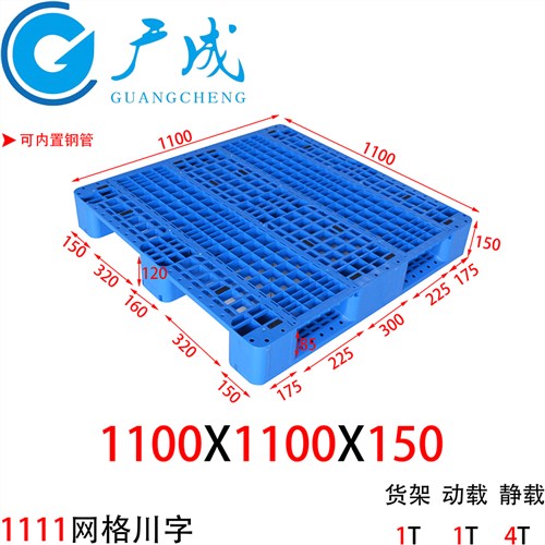 川字网格塑料托盘1111上货架叉车搬运托盘1100*1100*150塑料栈板