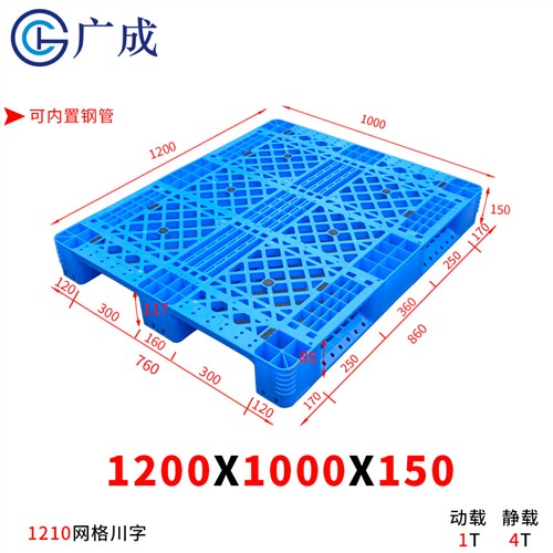 新款1210网格川字可内置10根钢管塑料托盘,表面减轻货物压痕设计