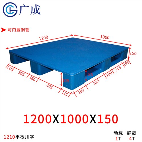 厂家批发1200*1000*150川字型平板内置钢管防潮塑料托盘 塑胶卡板