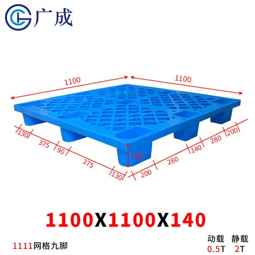 1100*1100*140网格九脚塑料托盘_轻型网格塑料托盘_价格便宜
