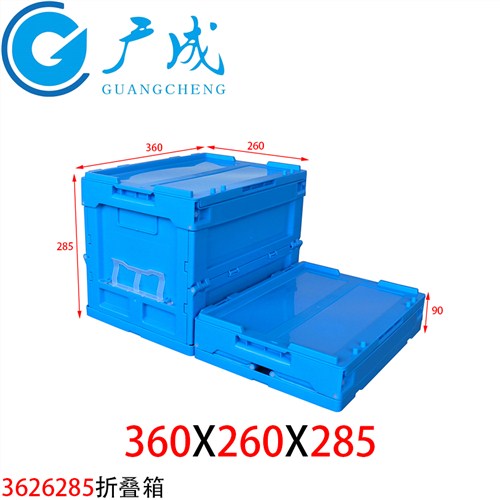 360*260*285_带盖塑料周转折叠箱_汽车物流箱_零部件折叠收纳箱_配盖